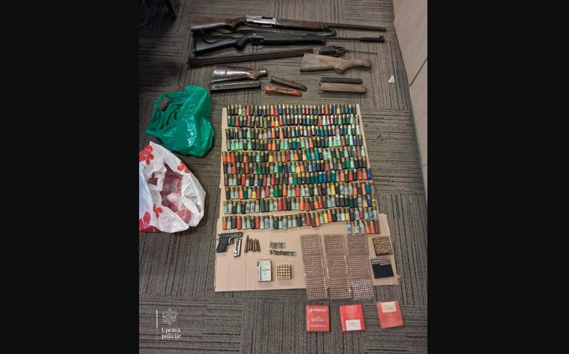 "Preduzimajući dalje preventivne mjere i radnje u cilju sprečavanja posljedica eventualne zloupotrebe vatrenog oružja, izvršen je pretres kuće koju koristi M.U. Tom prilikom pronađeni su i oduzeti: puška marke „Franchi“, pištolj marke „Beretta“, metalna cijev i mehanizam od puške nepoznate marke i kalibra, vazdušna puška, 424 komada municije različite vrste i kalibra, 1.028 kapisli za punjenje patrona i tri dijela od puške. Na licu mjesta pronađena je i veća mašina za pravljenje municije",saopšteno je iz policije.